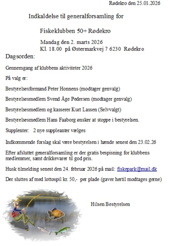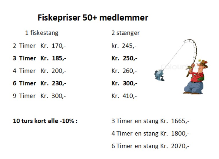 Klub 50+ er parkens fiskeklub for voksne i alderen 50 eller derover. Medlemmerne samles regelmæssigt, for at dele deres hobby i godt selskab ved søen. Nye medlemmer bydes hjertelig velkommen af formand: Peter Honnens, der gerne kontaktes på tlf. 4041 6697.